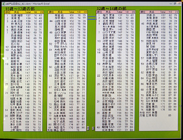 15歳―17歳の部の全選手がホールアウトしてのリーダーズボード