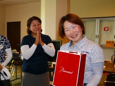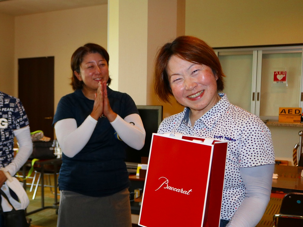 予選競技トップ通過の記念品を心から嬉しそうに受け取った清水美恵子(鳩山)。とっても素敵な笑顔です (#^.^#)
