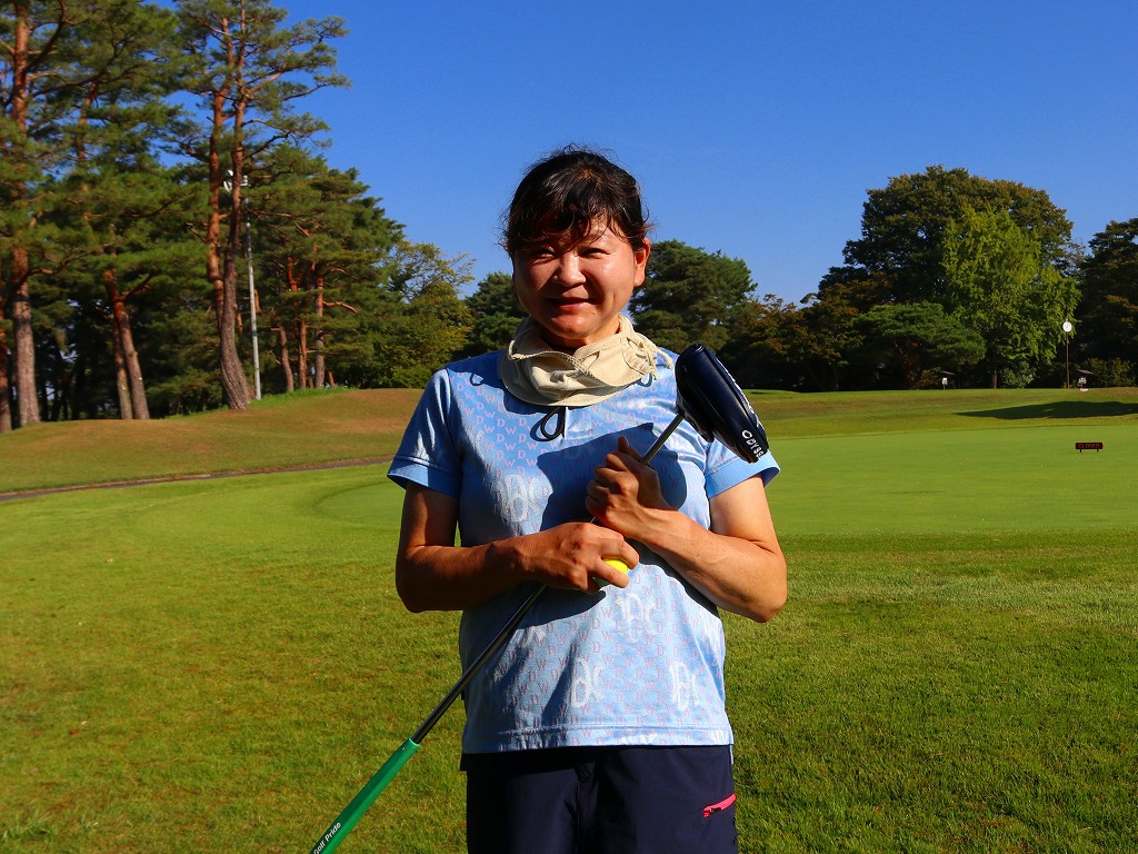 後輩たちと比較して飛距離やラフからの脱出の際のパワーの差につい弱音を吐く小池晶代(白水)。しかし、今回は予選競技をトップの成績で通過。飛距離・パワーに劣る分、ショートゲームやコースマネジメントでカバーする試合巧者なのだろう。