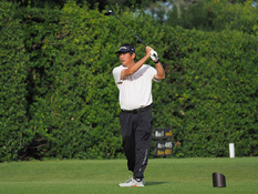 アウト第1組、植松強(富士チサン)のティーショットで最終日がスタートです!