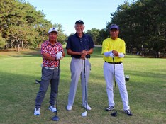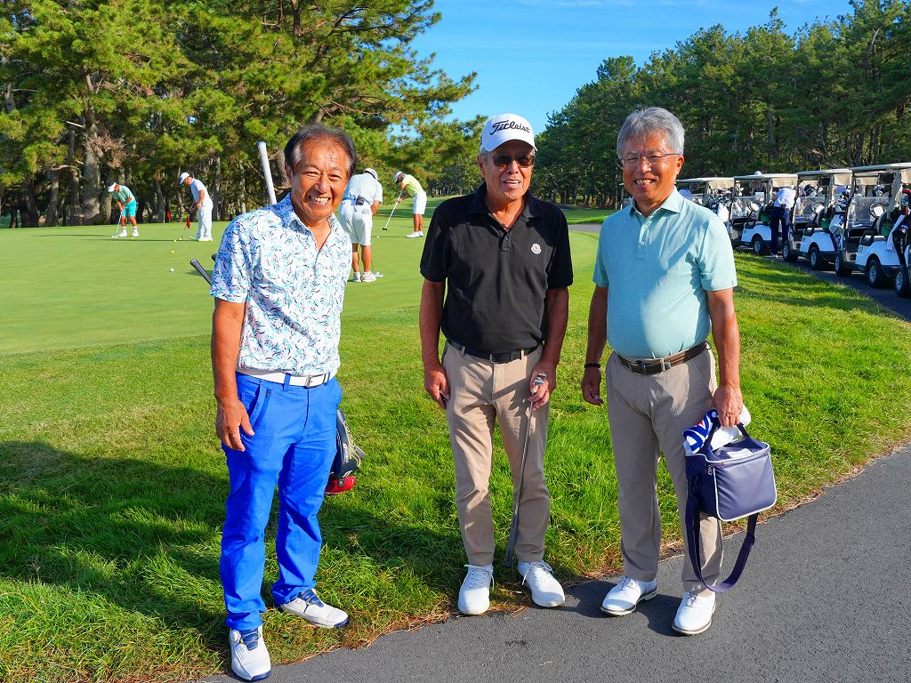 10番ティースタートの1組目(第16組)の3選手。左から秋山肇(熊谷)、瀬戸信昭(鷹之台)、尾崎美喜夫(富士カントリー笠間)。