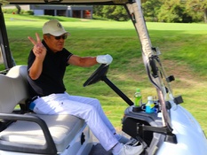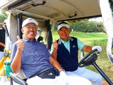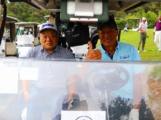 写真:同じ組、同じカートに乗ってプレーする相馬聡夫(茨城)と2ショット。