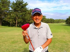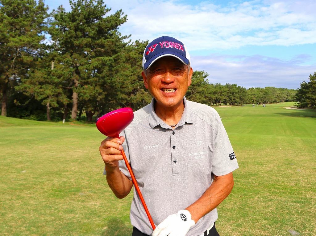 岩井姉妹の妹・千怜と同じドライバーを手ににっこりする田村敏明(ヨネックス)。