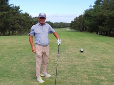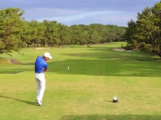 スタイリッシュさが際立つ平岡明彦(大洗)。10番ティースタートの最終組(第32組)でプレーする。