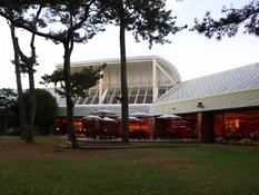 本決勝競技の舞台、浜松シーサイドGCには「映えるスポット」がいくつもあるのだが、このクラブハウスもそのひとつ。今朝6時過ぎ、9番グリーン横からの眺め。
