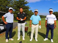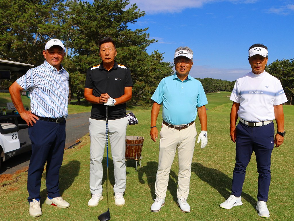 写真:1番ティーから最後にティーオフした第16組の4選手。左から小山博義(飯能グリーン)、鈴木守(葛城)、本澤顕一(日高)、畔上隆治(青梅)