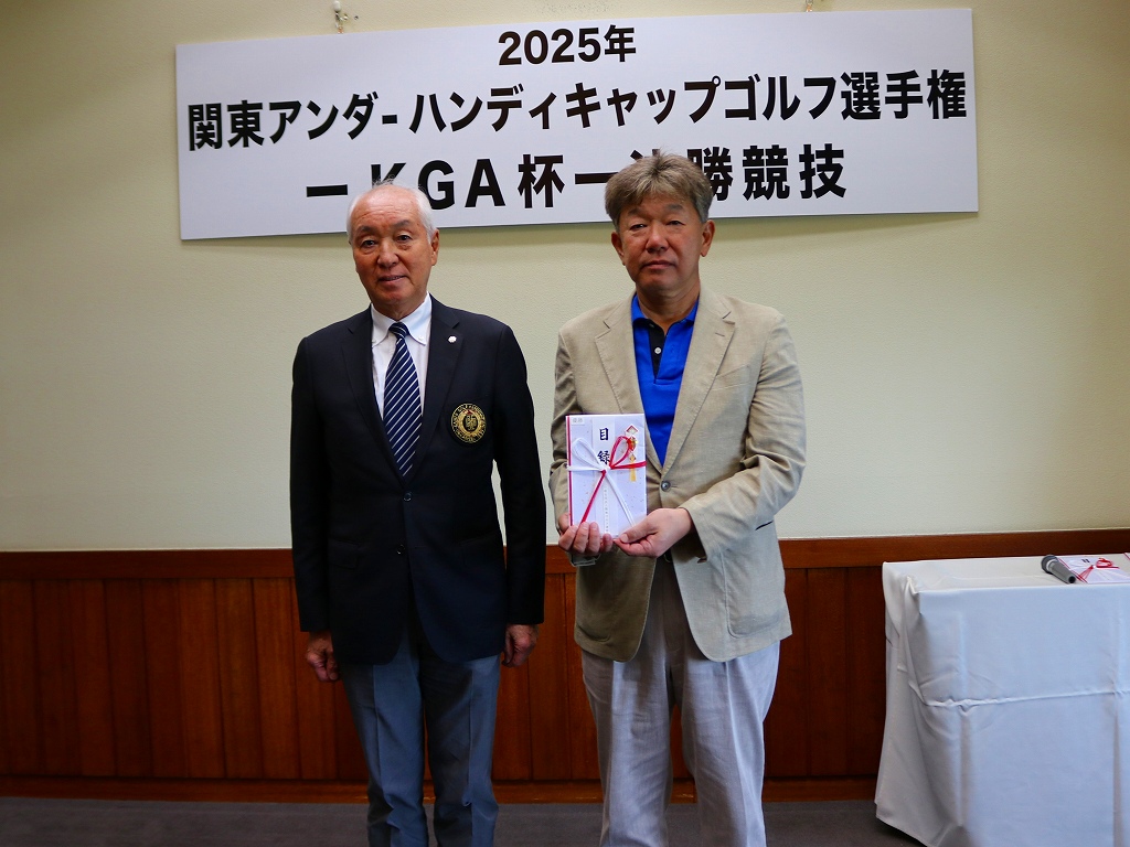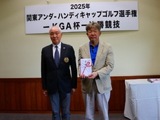 今年度の関東アンダーハンディキャップゴルフ選手権ーーKGA杯ーー決勝競技は、東京・府中の街を見下ろす桜ヶ丘CCで、絶好の気候・コースコンディションのもとで開催され、男子は熊野裕一(オリムピックナショナル)、女子は吉川薫(桜ヶ丘)がそれぞれ素晴らしいゴルフを展開し、タイトルを戴冠した。 両選手は表彰式のスピーチで桜ヶ丘CCとKGAへの感謝の言葉に続き、それぞれ次のように述べた。 熊野「この競技には3年前から挑戦させてもらっています。昨年は足のケガもあって予選で敗退しましたが、今年はこうして念願の優勝をすることができました。今日は本当にありがとうございました」