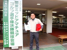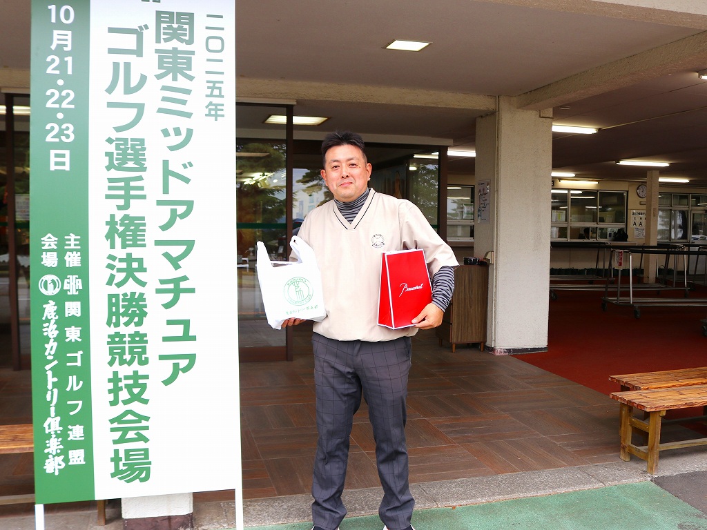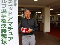 朝霧ジャンボリーGC(6906ヤード、パー72)で行われた予選競技で、唯一の60台となる67でラウンド。ベストスコア賞を獲得した茅野弘喜(諏訪湖)。