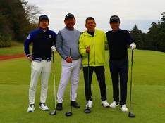 前日よりも冷え込んだ朝。標高の高い北コース10番ティーから最初にスタートする第16組の4選手。左から高村和央(富士箱根)、日向孝行(熊谷)、小池希吏人(石坂)、吹野耕一(富士カントリー笠間)。